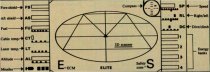 Click here for larger imageThe compass is just like the terrestial variety but is in 3D. It shows in what direction the nearest planet is. If the pointer (the dot) appears large and bright you are heading towards the planet. If it is small and dim you are heading away. If the safety zone S is lit the compass shows the direction of the nearest space station.