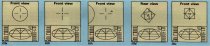 The problem is overcome by using "sticks and notches". The stick shows the height difference between you and the enemy ship and the end without the notch shows where the ship is in the horizontal plane. Using this system (Figure IId) the position of the enemy, represented by the notch, can be clearly seen. In this example the enemy is behind, above and to the right of you.