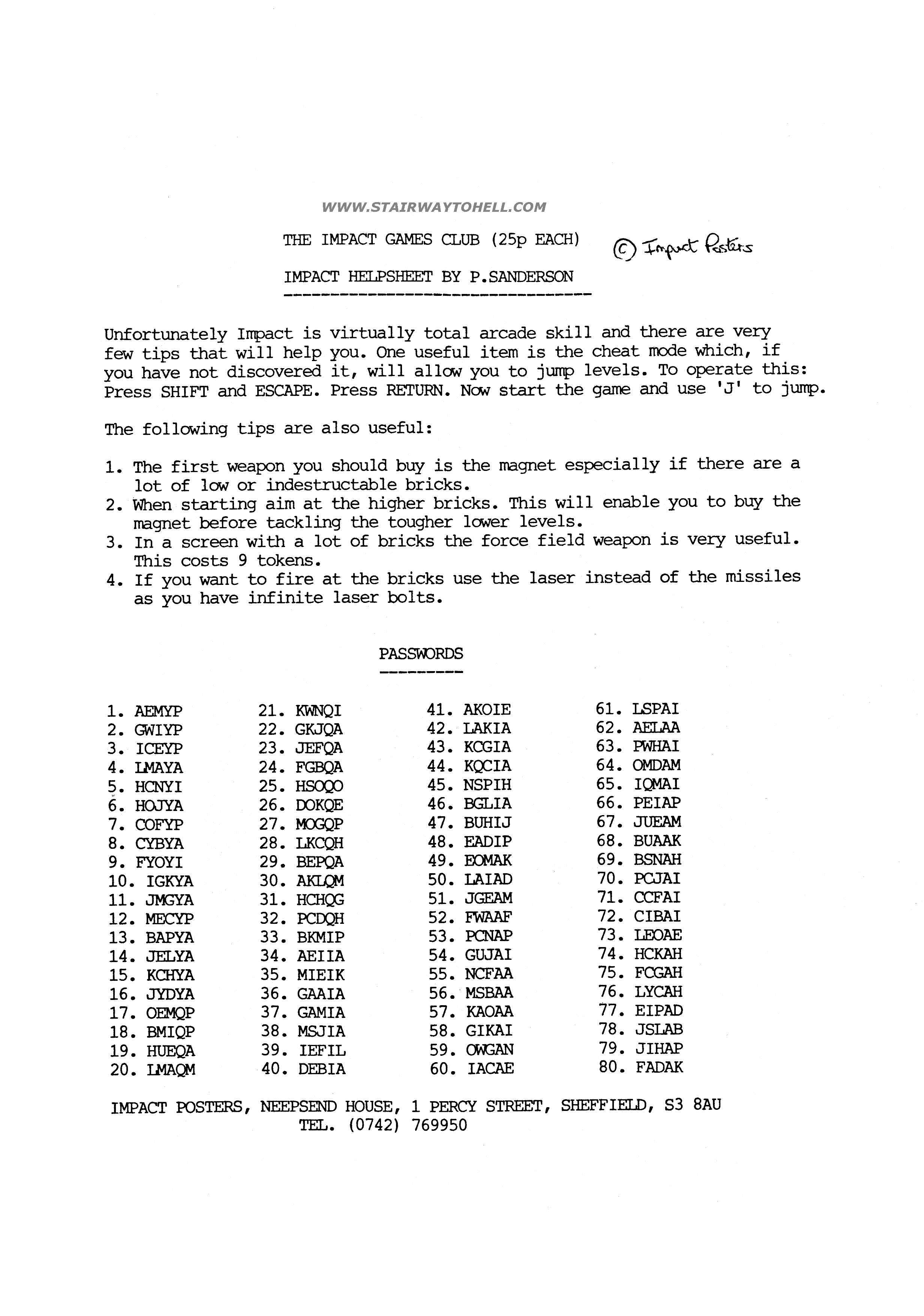 Hintsheet, Impact Posters